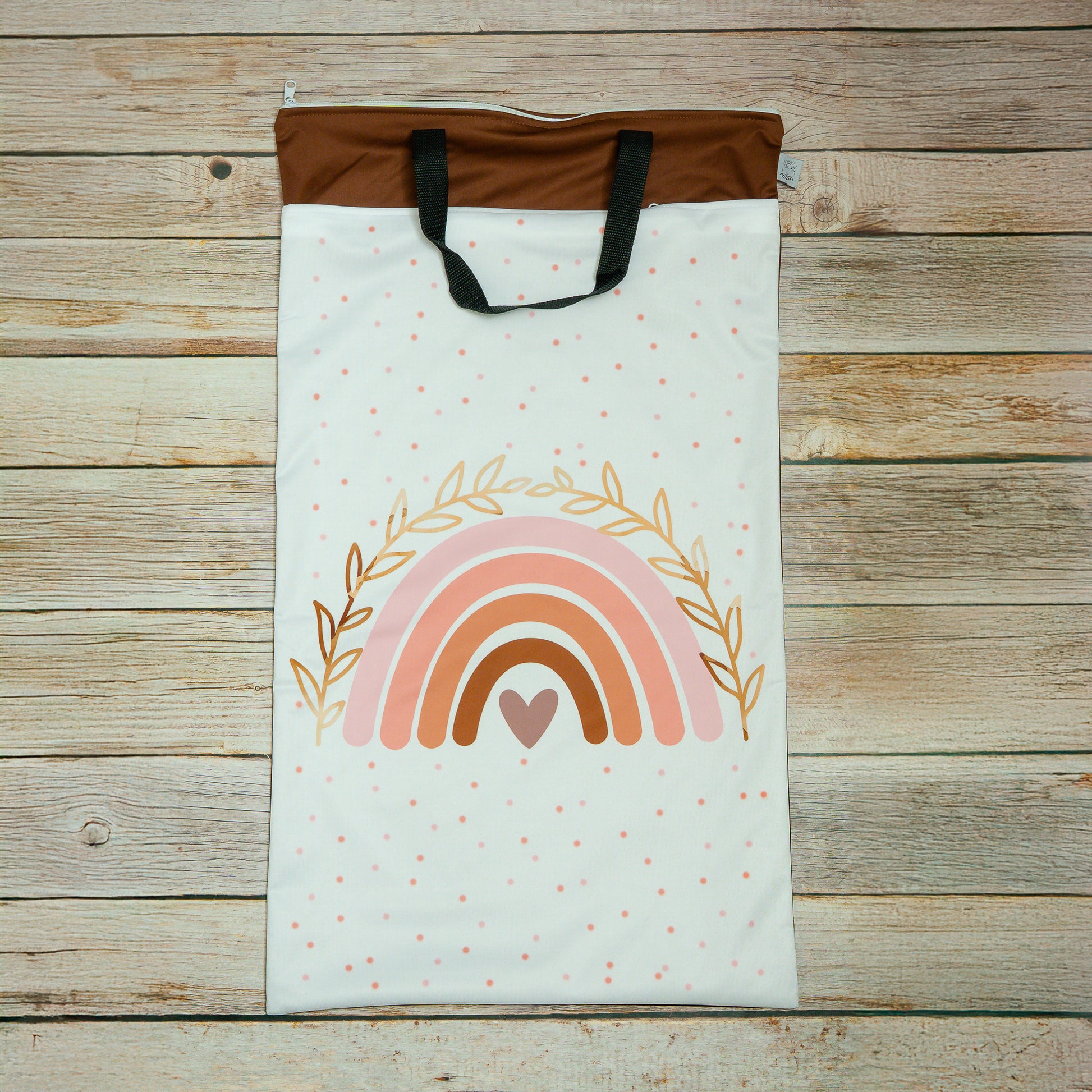 Das Besondere an diesem Modell sind zwei stabile Henkel an der Oberseite der Nasstasche. Mit den Henkeln kann die Nasstacshe bequem an einem Haken oder einem Türgriff aufgehangen werden - zum Beispiel in der Nähe des Wickeltischs. Natürlich dienen sie auch zum Tragen der Tasche.