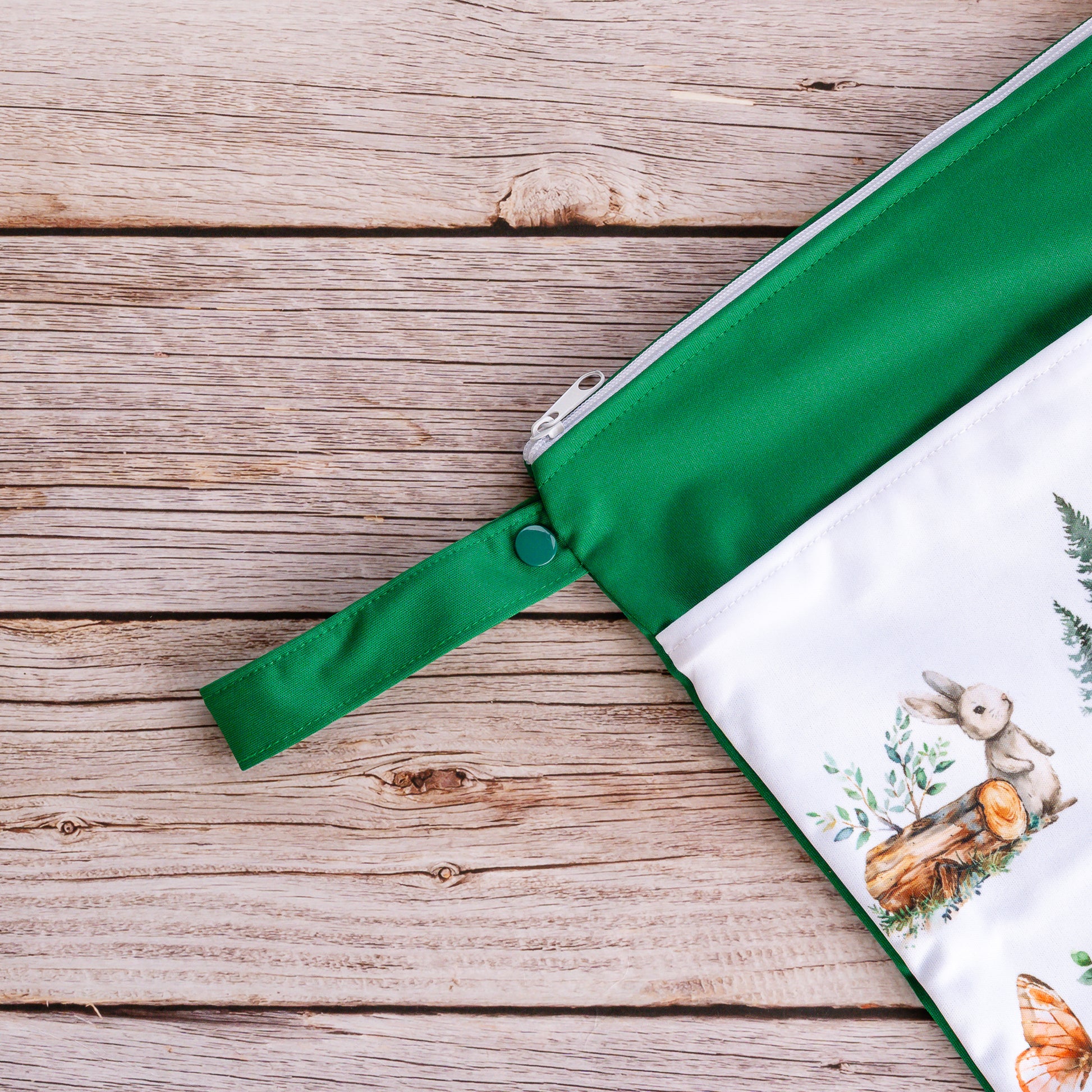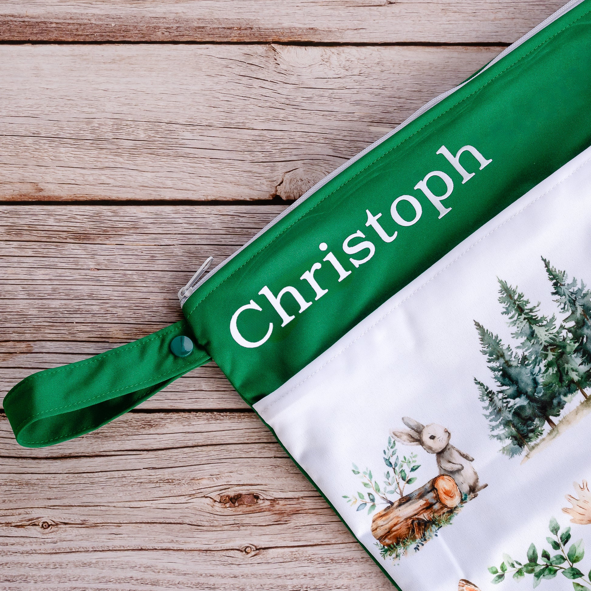 Das Besondere an diesem Modell sind zwei stabile Henkel an der Oberseite der Nasstasche. Mit den Henkeln kann die Nasstacshe bequem an einem Haken oder einem Türgriff aufgehangen werden - zum Beispiel in der Nähe des Wickeltischs. Natürlich dienen sie auch zum Tragen der Tasche.