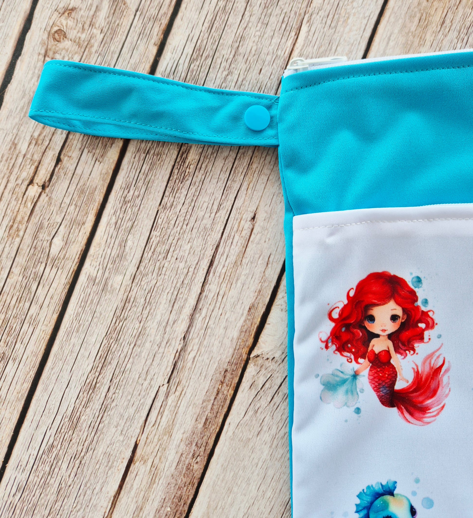 Das Besondere an diesem Modell sind zwei stabile Henkel an der Oberseite der Nasstasche. Mit den Henkeln kann die Nasstacshe bequem an einem Haken oder einem Türgriff aufgehangen werden - zum Beispiel in der Nähe des Wickeltischs. Natürlich dienen sie auch zum Tragen der Tasche.