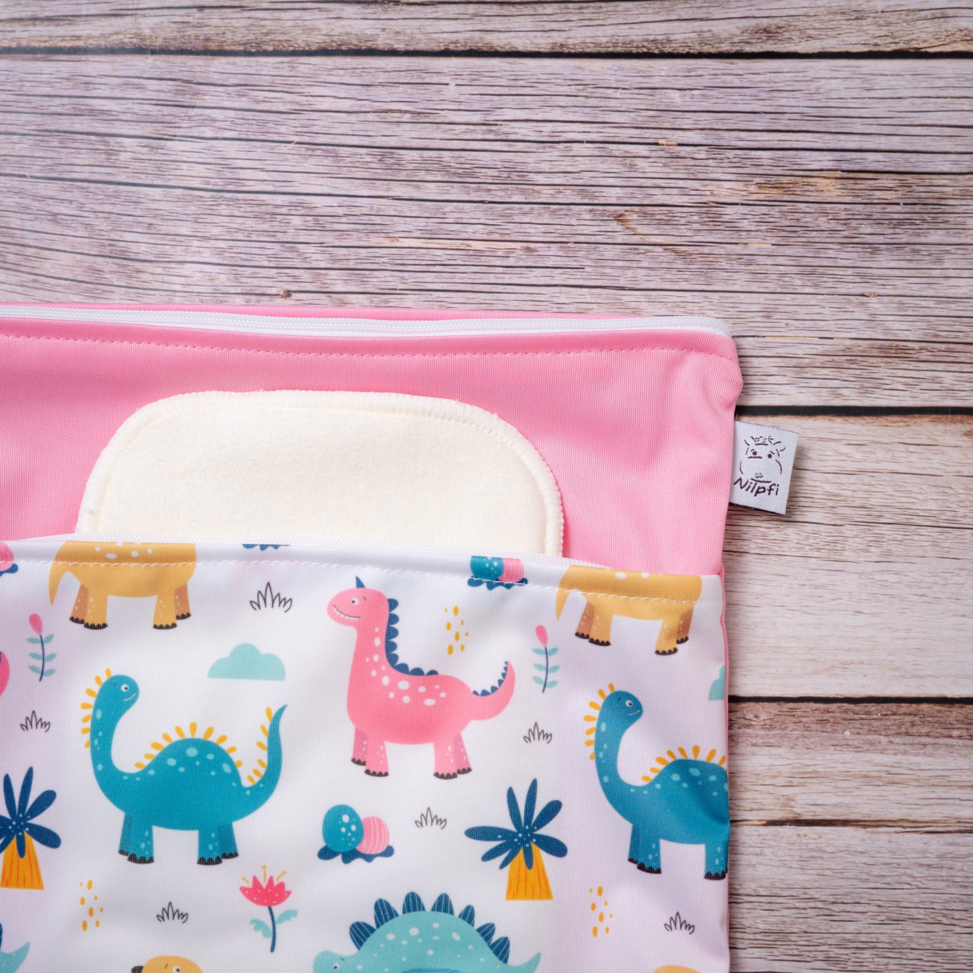 PUL-Wetbags kannst du zusammen mit den Saugeinlagen in der Windelwäsche bei 60 °C und Vollwaschmittelpulver waschen. Bei nur leichter Verschmutzung reicht auch eine Waschtemperatur von 30-40 °C mit der normalen Buntwäsche.