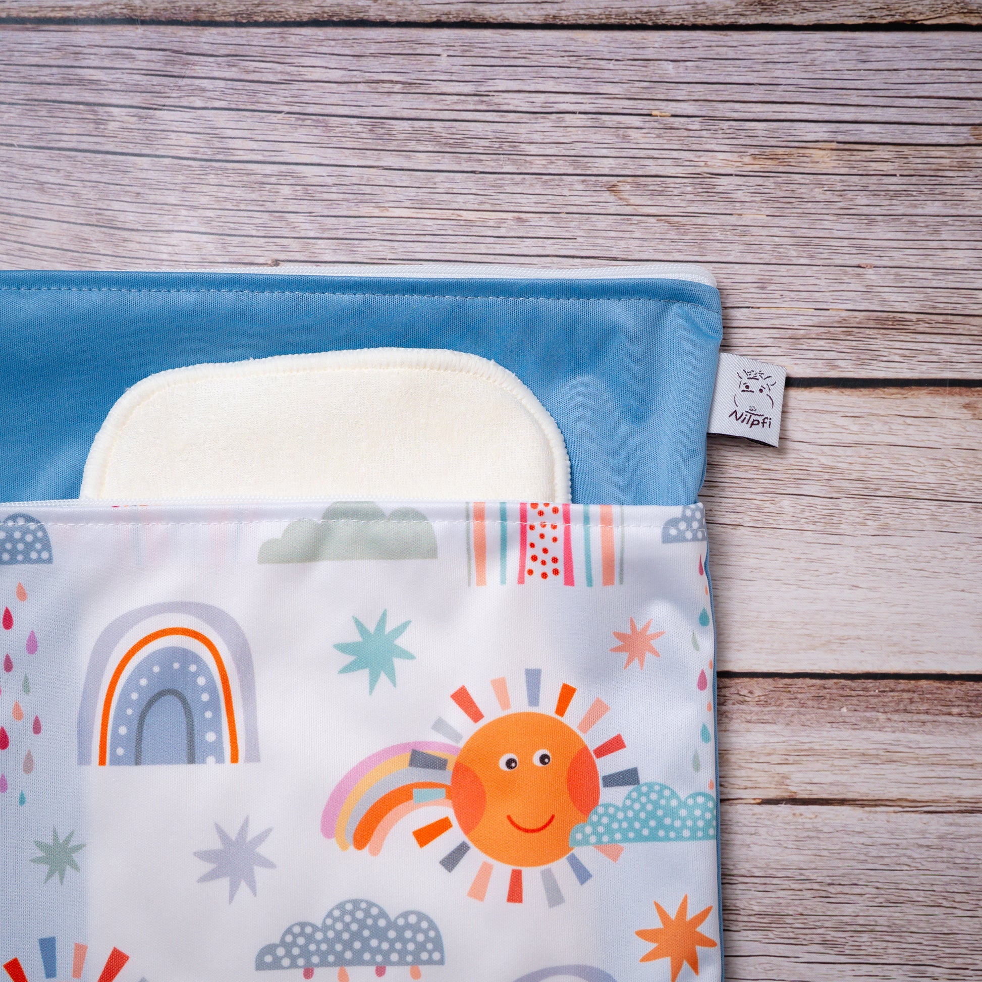 PUL-Wetbags kannst du zusammen mit den Saugeinlagen in der Windelwäsche bei 60 °C und Vollwaschmittelpulver waschen. Bei nur leichter Verschmutzung reicht auch eine Waschtemperatur von 30-40 °C mit der normalen Buntwäsche.